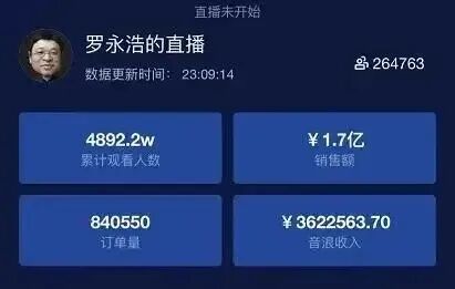 截至 4月1号晚上23:09,从实时数据上看,累计观看老罗直播的观众超过4800万。销售额达到1.7亿元,订单量超过84万,获打赏的音浪收入合计已经超360万元。